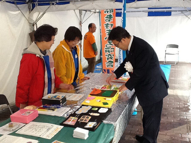 「防災布絵本」を熱心にご覧に なられました。